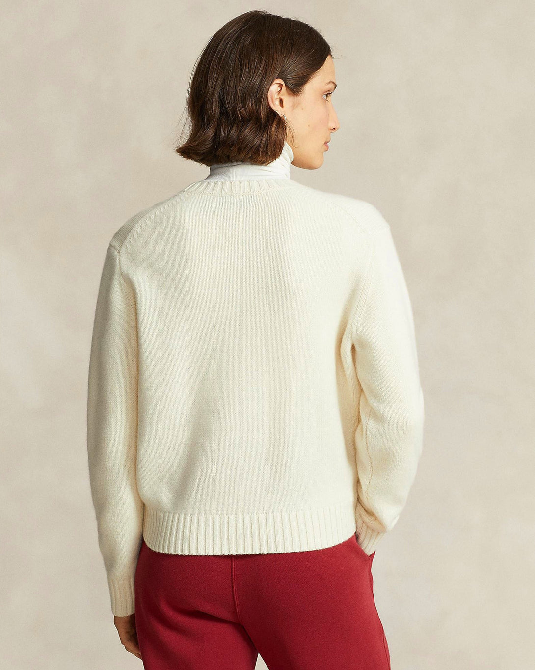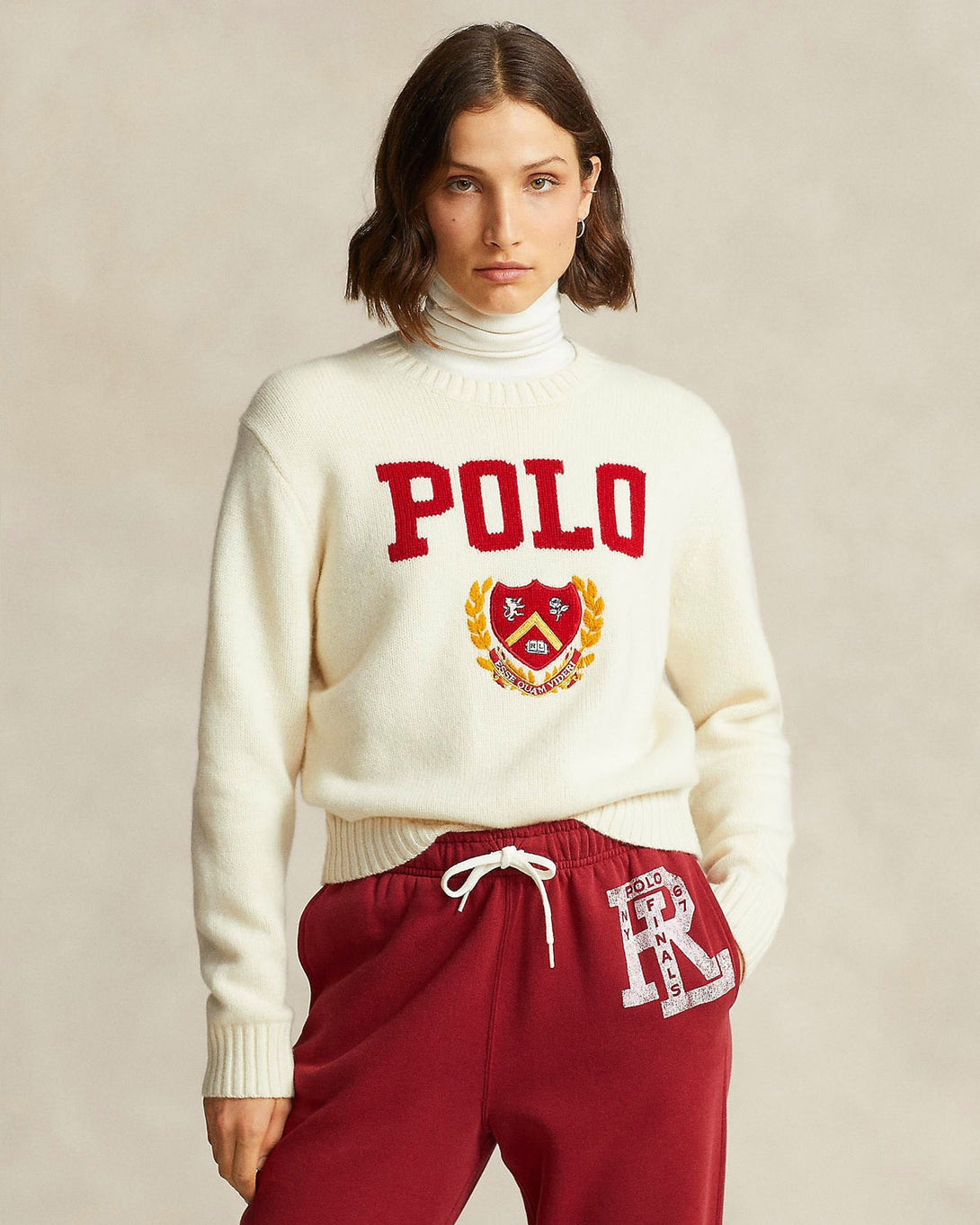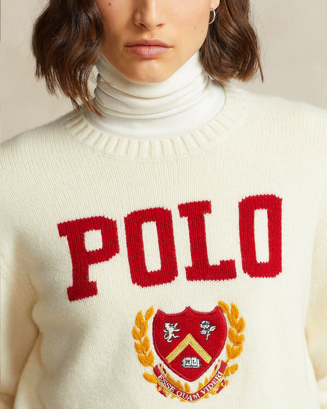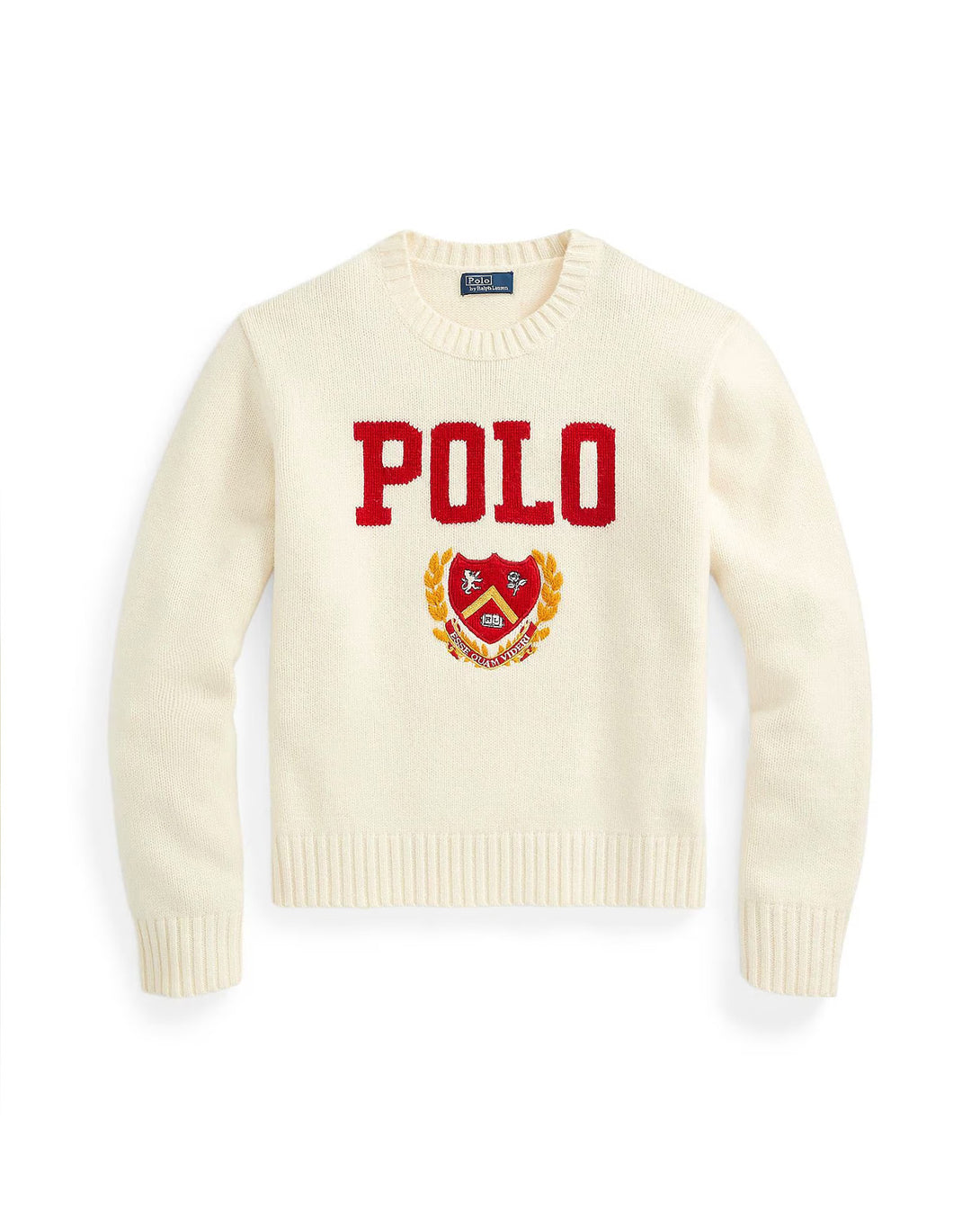 RL - Logo & Crest Wool Crewneck Women's Sweater - Cream